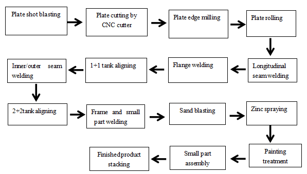 Наша производственная линия по производству ветряных электростанций состоит из следующего оборудования: машины для струйной дробеструйной обработки, станка для резки с ЧПУ, фрезерного станка для листовой плиты, станка для прокатки листов, платформы для выравнивания фланцев, 1-позиционный ротатор, сварочный аппарат с прямым сварным швом, сварочные ротаторы, внутренние / внешние сварочный сварочный аппарат с 2 + 2 центрирующими ротаторами и сварочным ротатором (линия подъема), сварочные ротаторы для пескоструйной обработки и ротаторы для покраски.
